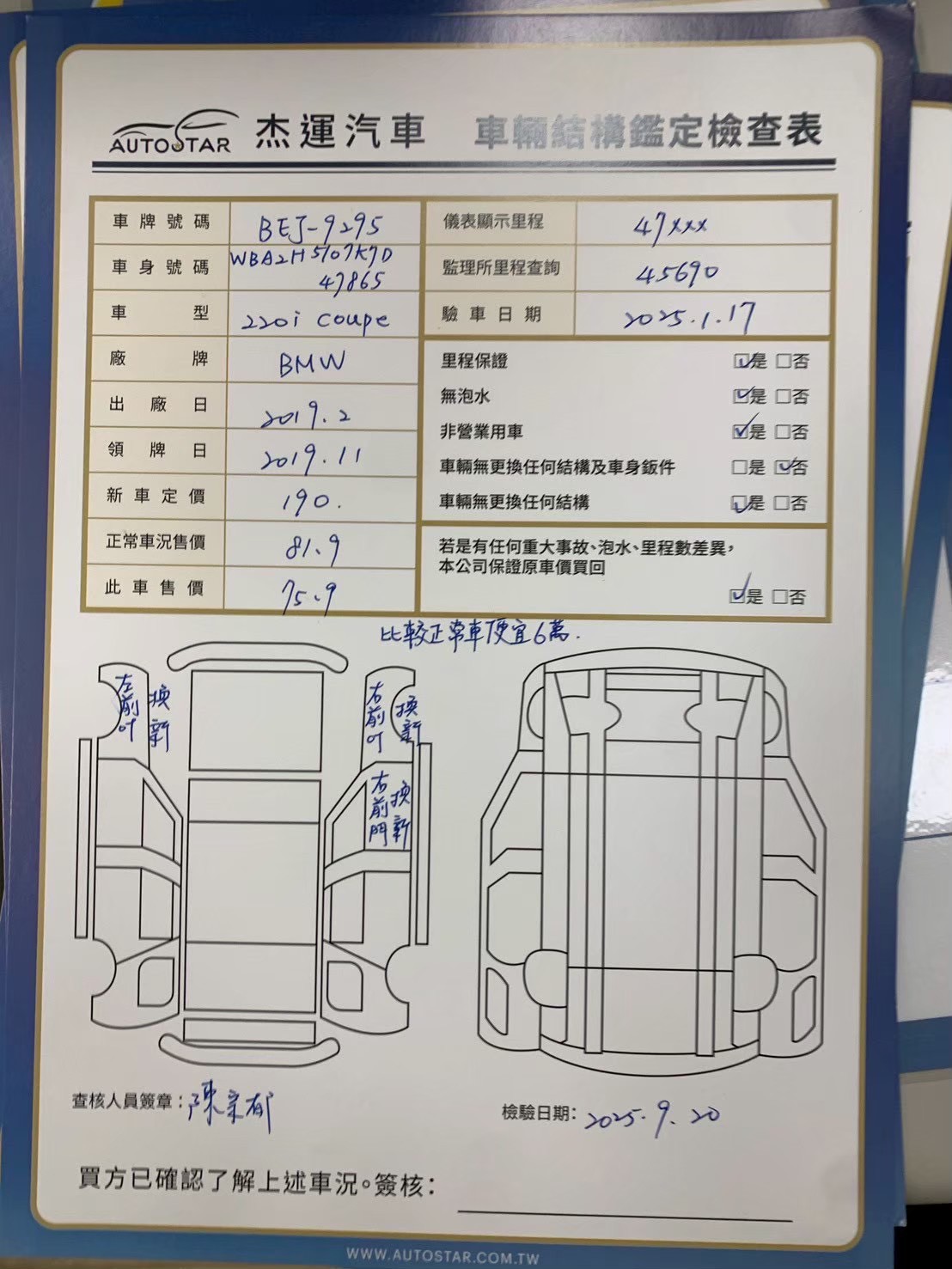 【杰運台中店】2019 BMW 2-Series 220i M Sport領航版