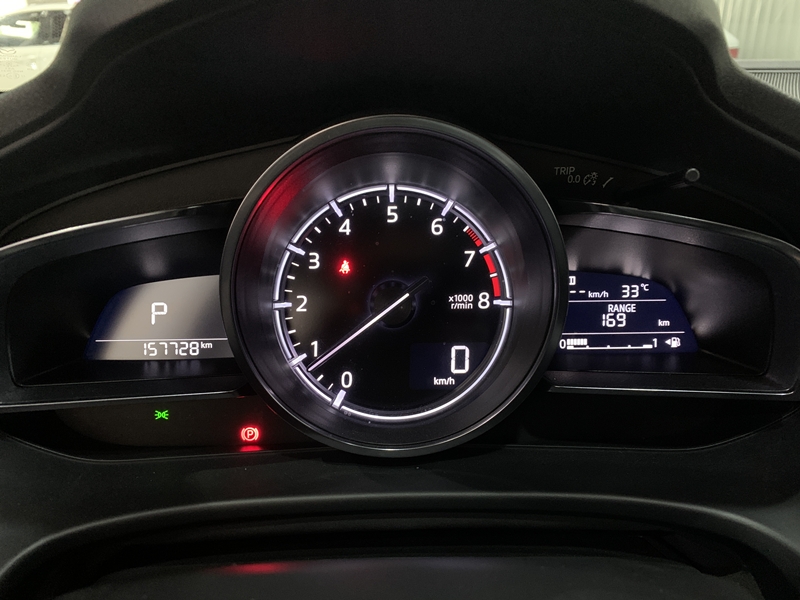 Mazda 3座艙為進化過的駕駛導向環境,坐進車室,明顯可以感受到濃郁的跑車化設定氛圍,一切的功能操作都以駕駛人為導向,但是卻沒有過往跑車戰鬥化座艙過度的侷促感。坐在駕駛座上視野往前延伸至儀錶,可以看到以轉速為主的單一指針式儀錶,時速則以較小的液晶顯示。最優化的儀錶高度,帶來了開闊又不失安全的視覺感。而隨著發動引擎,儀錶上方的Active Driving Display抬頭顯示屏會緩緩升起,在行駛間提供必要的行車資訊,科技感十足。