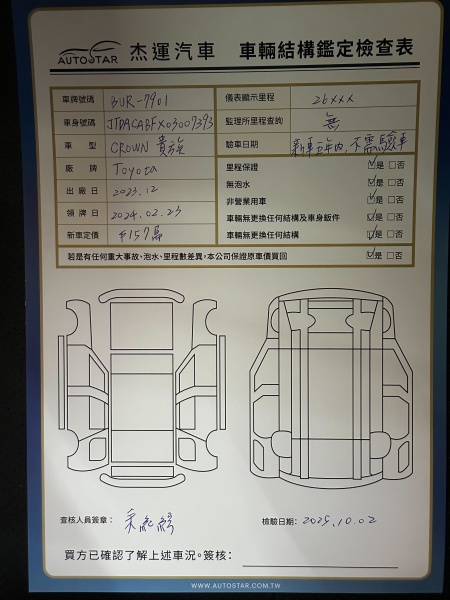 【杰運濱江】2024式 Toyota Crown 貴族版 2.5油電 TSS3.0智動駕駛輔助系統 ACC跟車/車偏/盲點 LED頭燈/轉向輔助 360度環景 原廠19吋鋁圈 雙前座電動加熱椅 三幅多功能真皮方向盤 12.3吋觸控式螢幕 Cayplay/藍牙/Type-C 抬頭顯示器 原廠導航