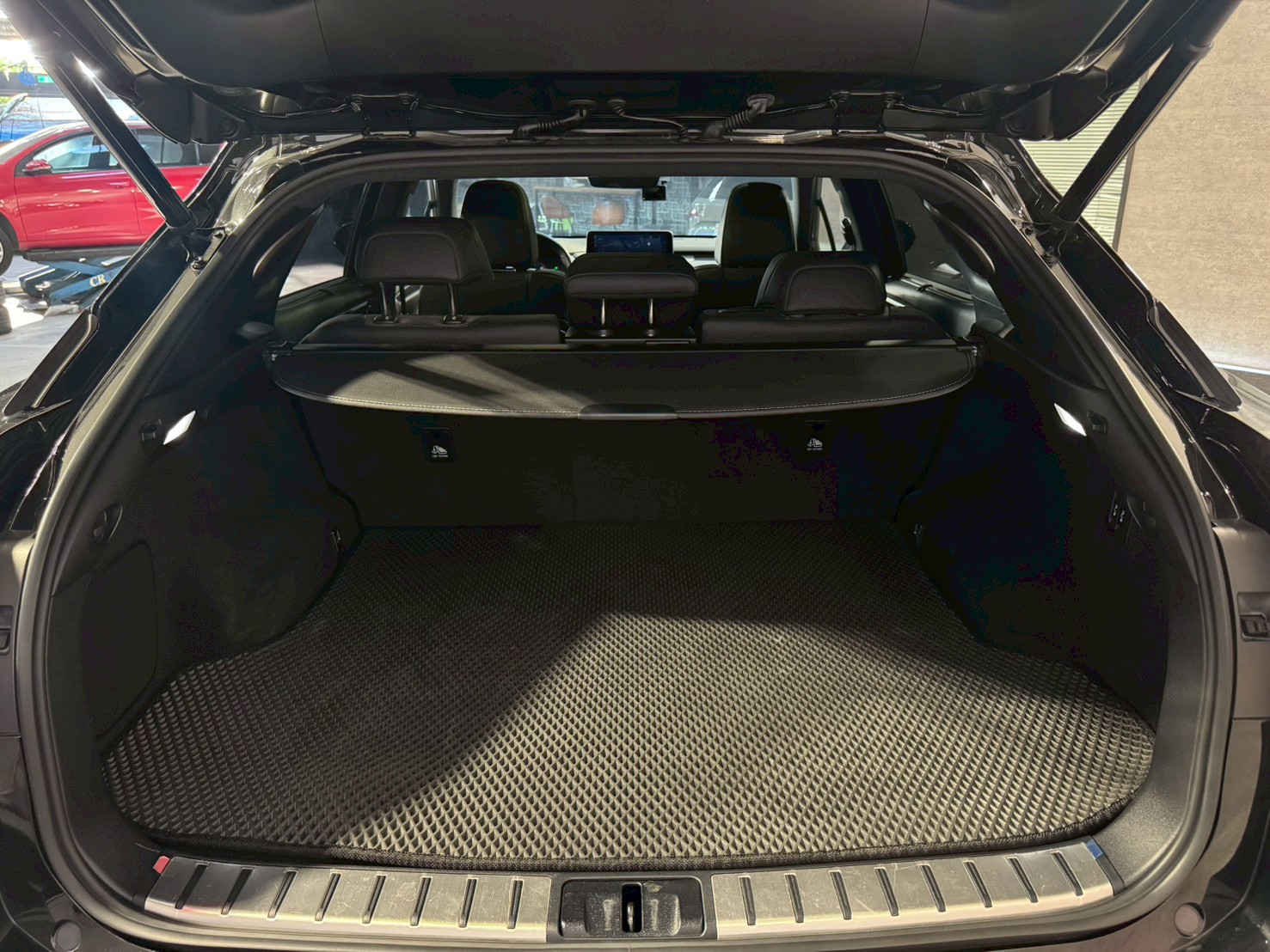 後視造型導入類似LS車系的L-shaped LED光條尾燈組,搭配由倒L造型所排列而成的序列式方向燈,凸顯源自Lexus的純正血統,而當其尾燈點亮時,更是銳氣逼人,強勢吸引人群目光。後保桿在Lexus團隊巧妙地將反光片、排氣尾管以及下擾流飾板重新設計排列後,與尾燈組完美呼應,讓整體後視面容更顯大器、優雅。