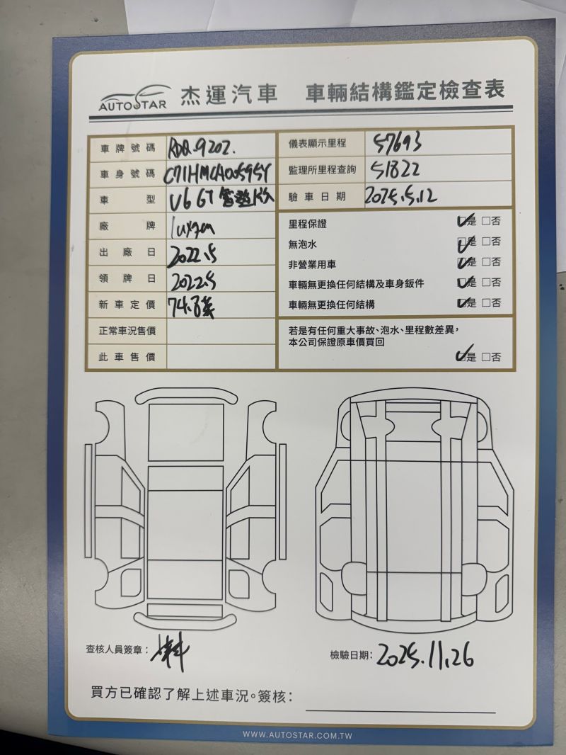 【杰運台北】2022 U6 GT 智遊版 定速 倒車顯影 車道變換輔助系統 獨立高音喇叭