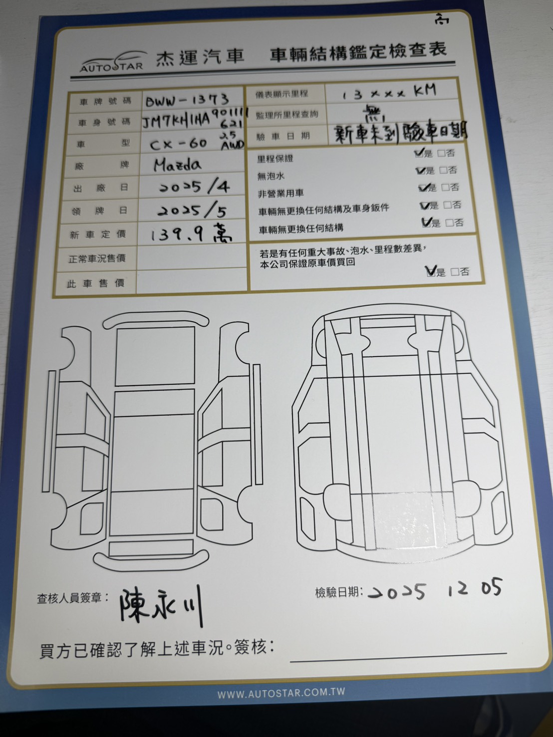 【杰運高雄】2025 Mazda CX-60 25S AWD Premium