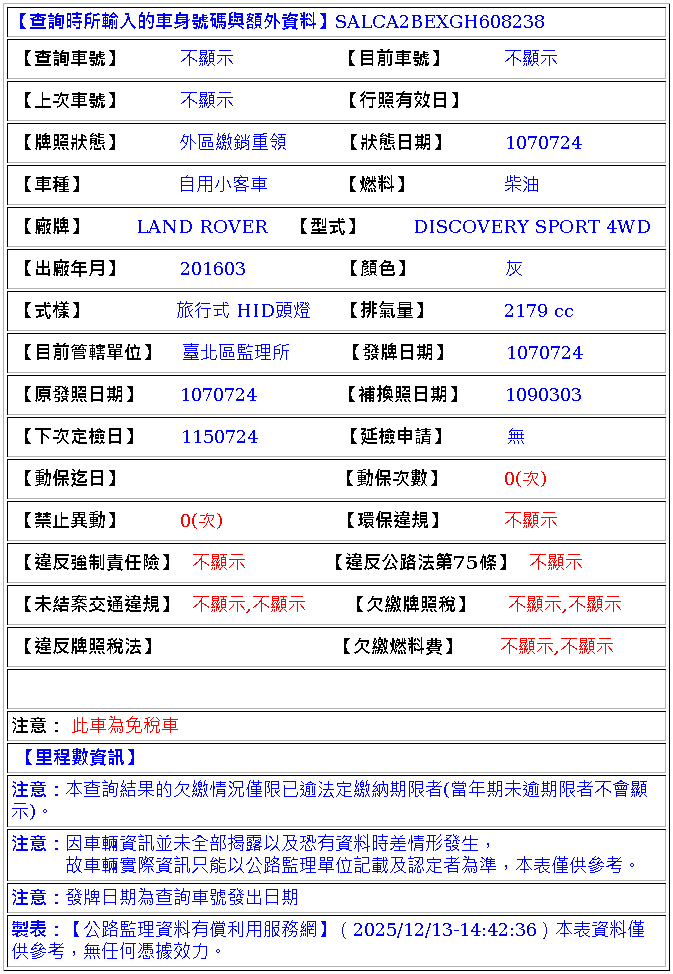 2016年3月出廠 2016年 7月27日領牌 實車里程:103551公里