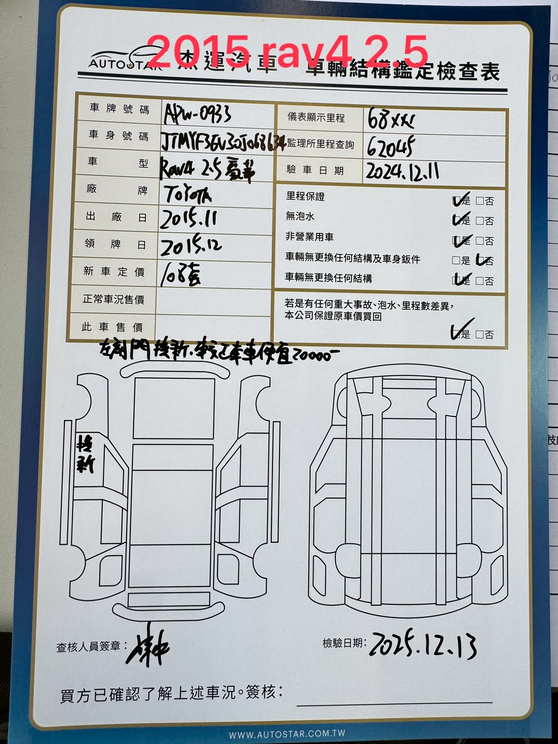 2015年11月出廠 2015年12月16日領牌 實車里程: 68300公里