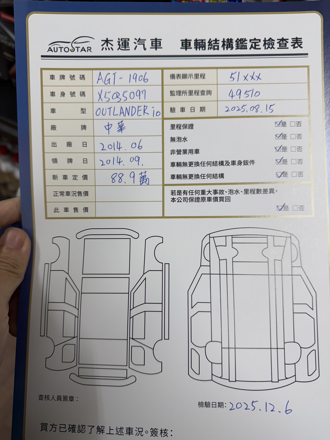 【杰運桃園】2014 Mitsubishi Outlander 2.4 IO 2WD 前霧燈 車頂行李架 恆溫空調 後座分離倒覆 CD音響主機 定速巡航 蜂鳴式倒車輔助 防盜系統 電子煞車力道輔助