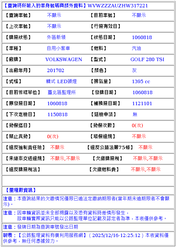 2017年2月出廠 2017年 8月18日領牌 實車里程:139432公里
