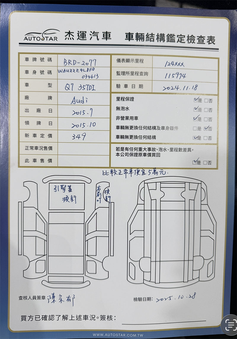 【杰運台中】2015 Audi Q7 35 TDI quattro High HID氙氣頭燈 車頂行李架 全景天窗 換檔撥片 方向盤電動調整 雙前座電動調整 後座出風口 定速巡航 電動尾門 分區恆溫空調