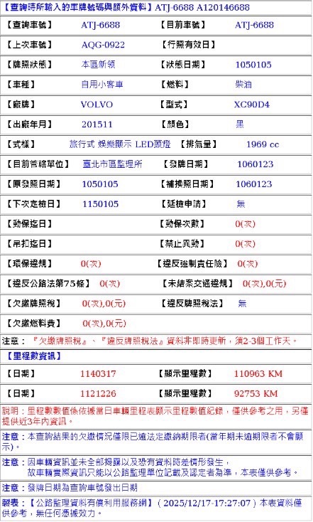 2015年11月出廠 2016年01月領牌 里程 118864 km