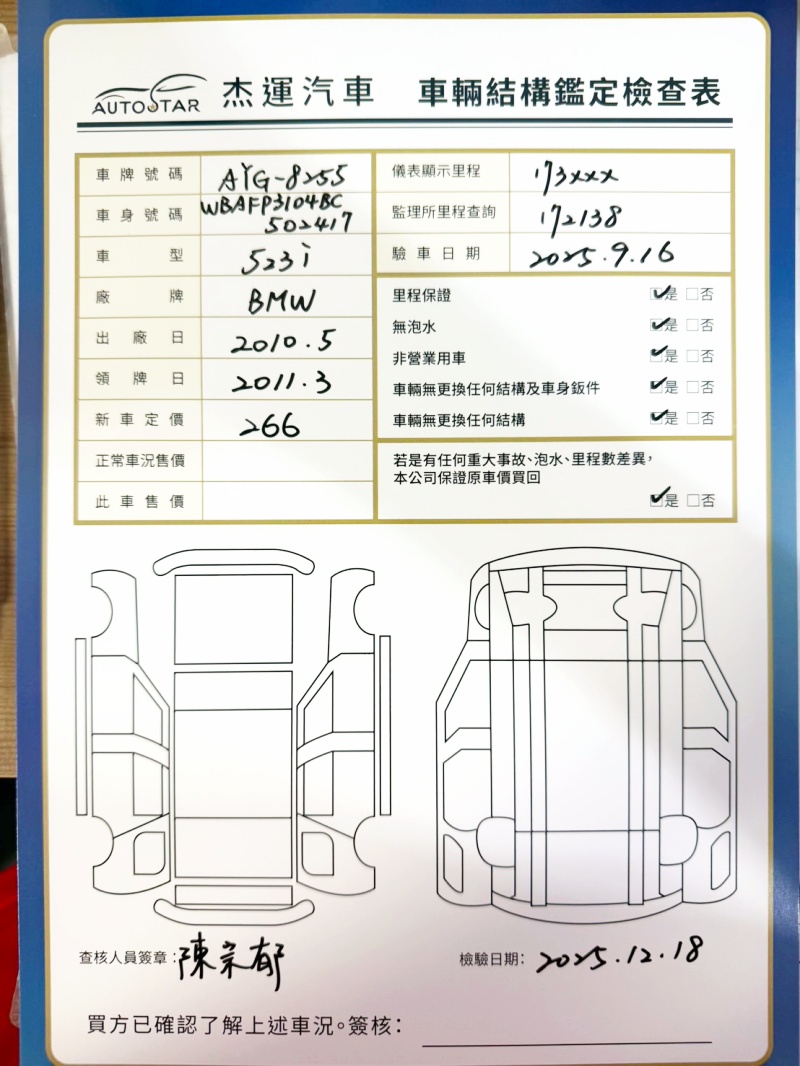 2010年05月出廠 2011年 03月28日領牌 實車里程:173597公里