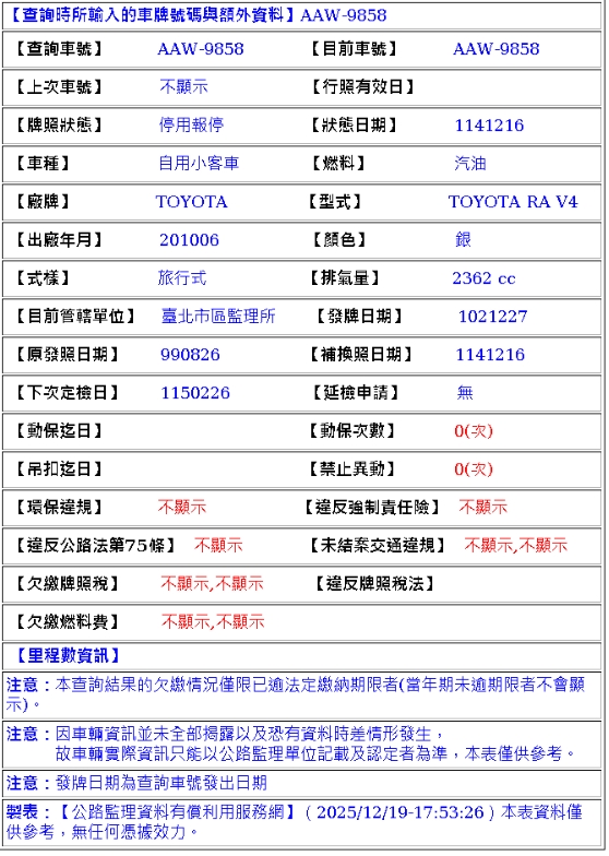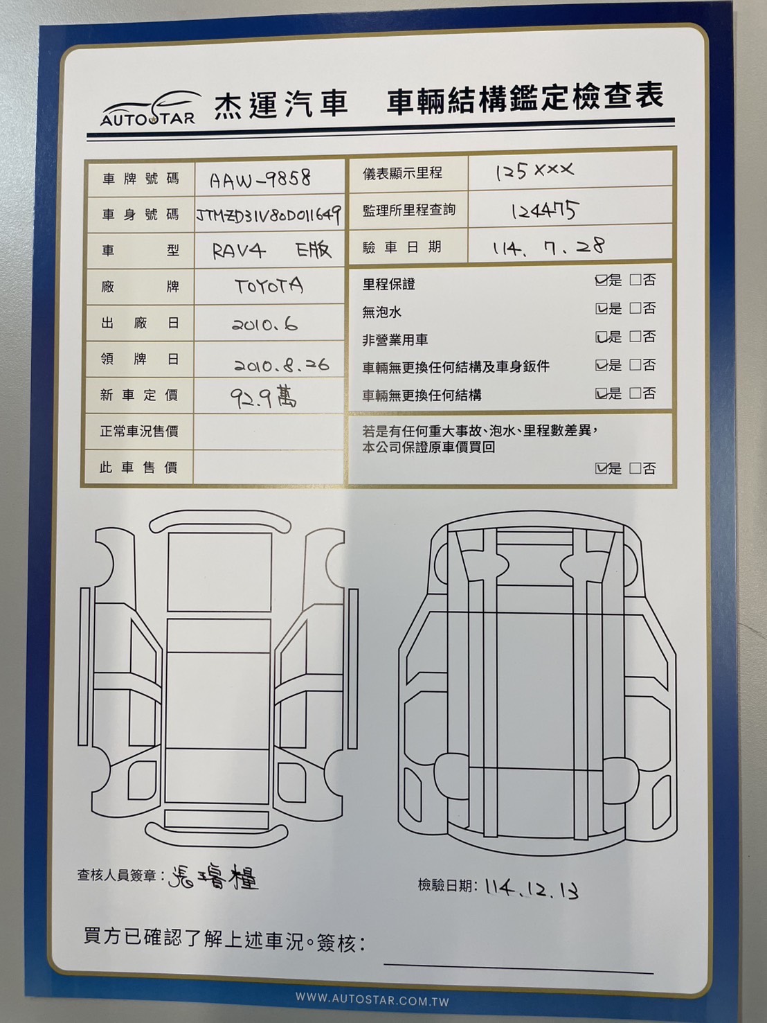 2010年06出廠 2010年08月26日領牌 實車里程:126044公里