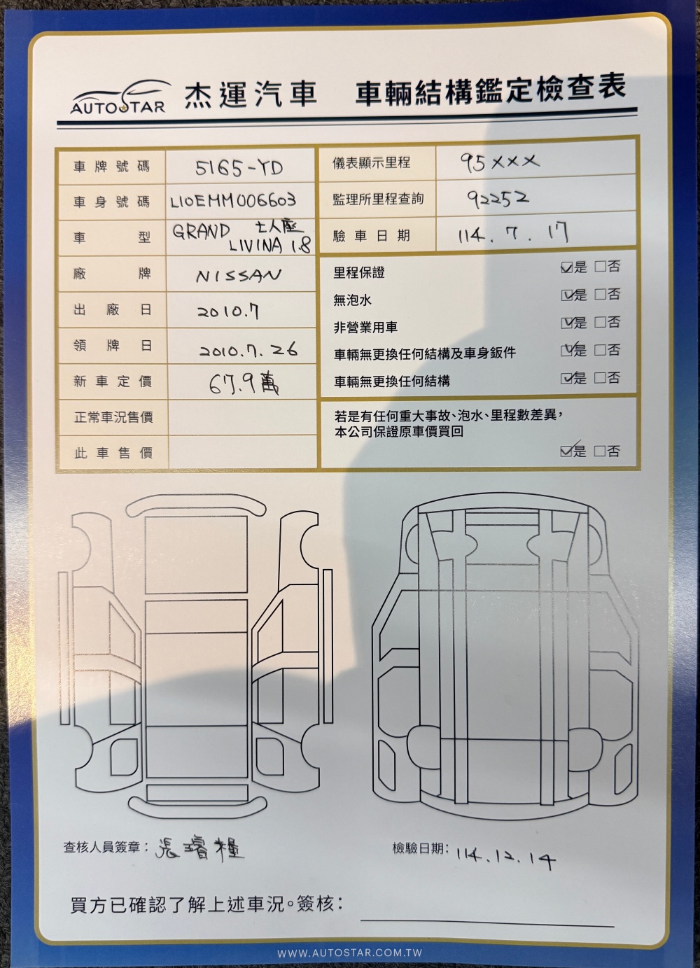 【杰運台北】2010 GRAND LIVINA 1.8七人座 前霧燈 前座扶手 恆溫空調 皮革座椅 免鑰匙啟動 抬頭顯示 防盜系統