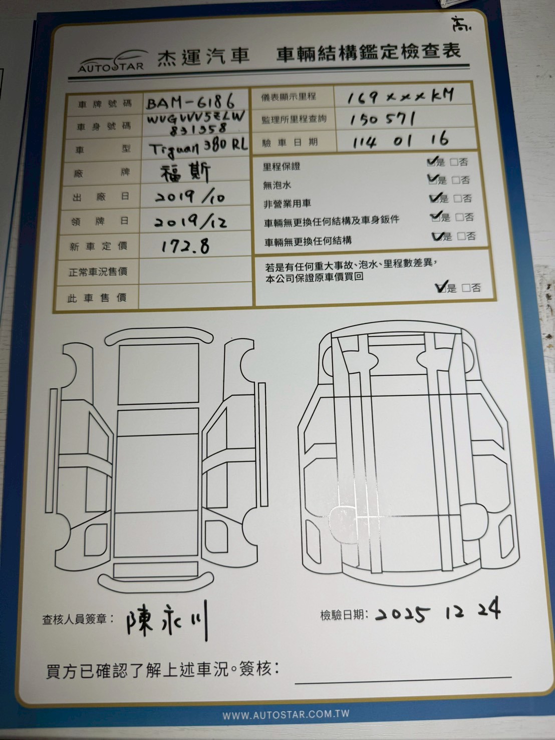 2019年10出廠 2019年12月19日領牌 實車里程:169572公里