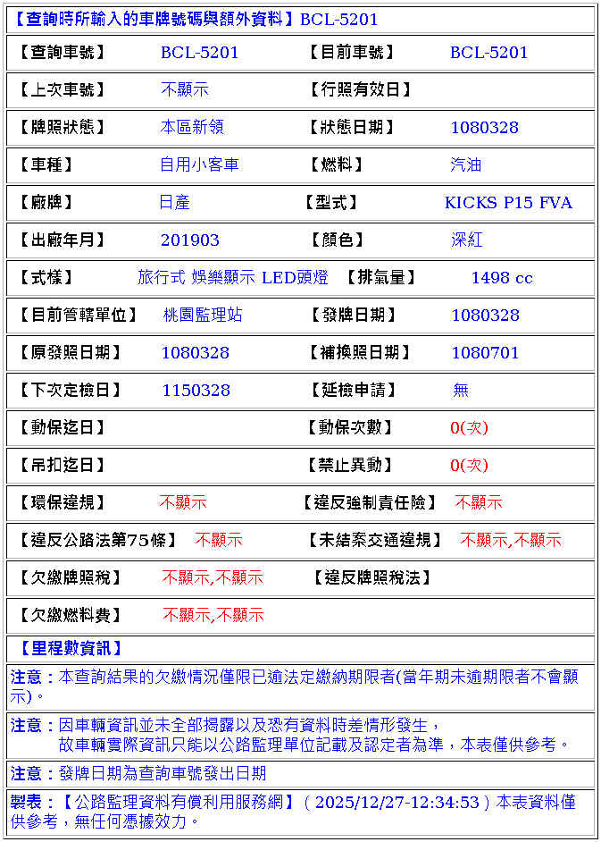 2019年3月出廠 2019年 3月28日領牌 實車里程:56987公里