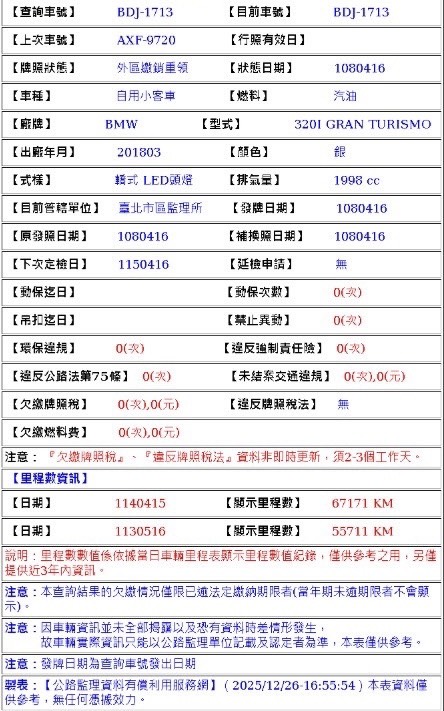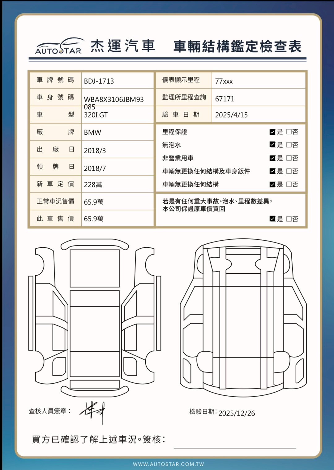 2018年03月出廠 2018年 07月31日領牌 實車里程:77111公里