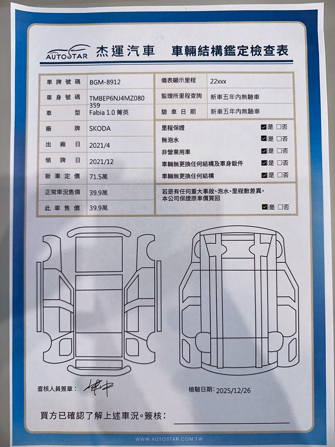 2021年04月出廠 2021年12月02日領牌 實車里程:22189公里