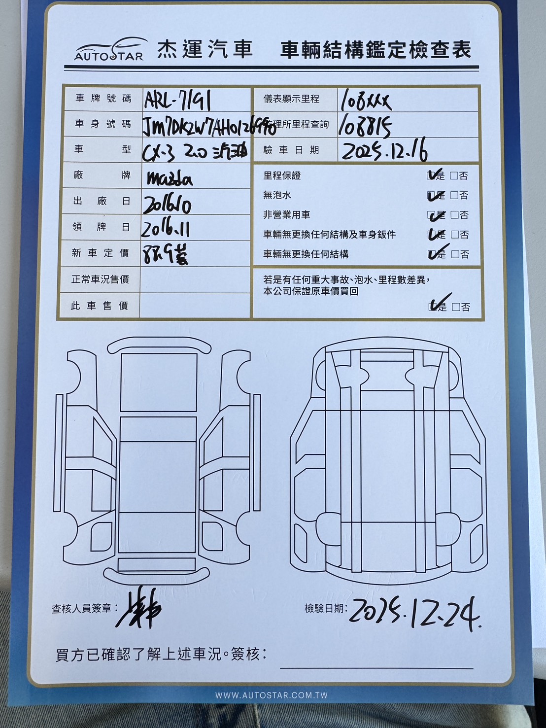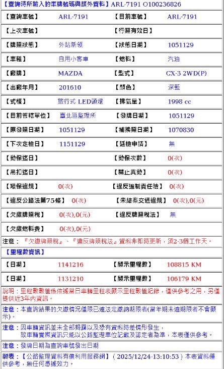 2016年11月29日領牌 實車里程:108866 公里