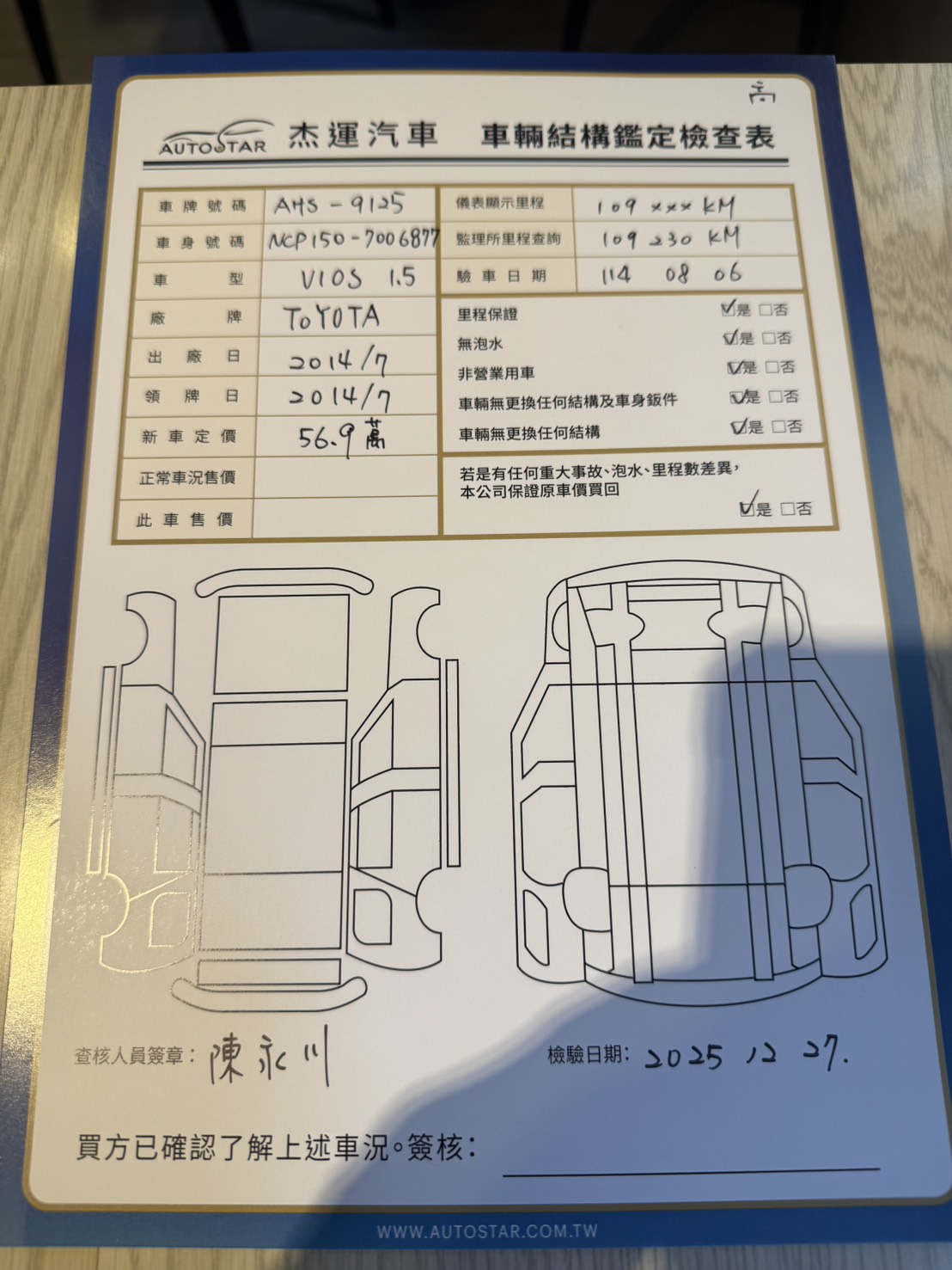 【杰運高雄】2014 Toyora Vios 1.5 經典