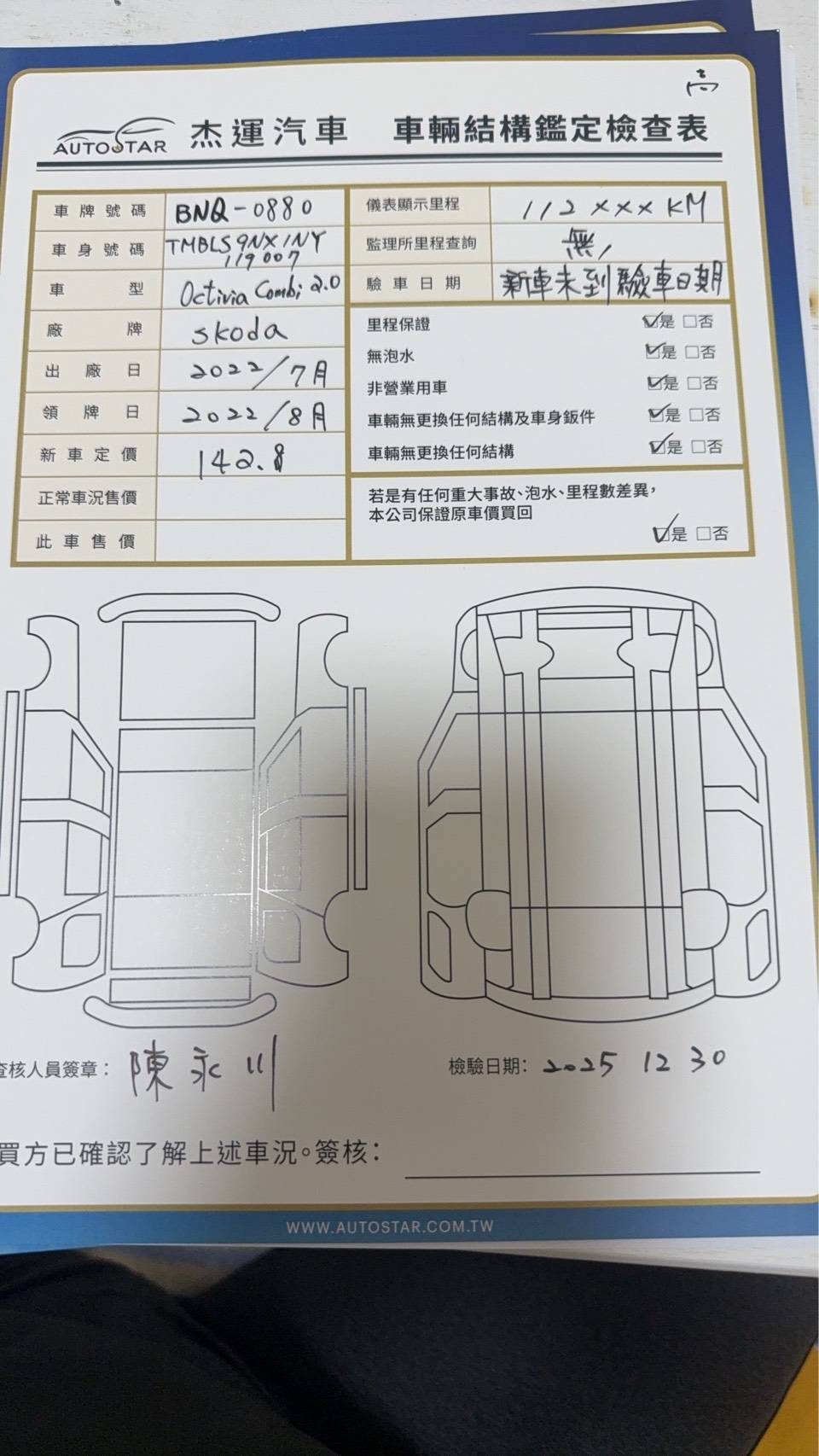 【杰運高雄】2022 OCTAVIA COMBI 2.0 TSi白