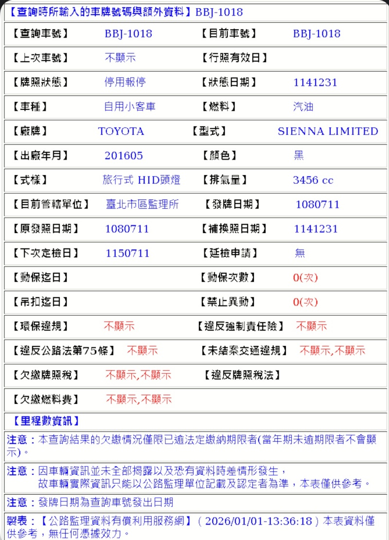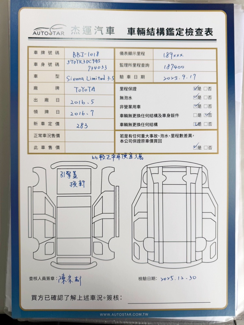 2016年05月出廠 2016年 07月11日領牌 實車里程:189815公里