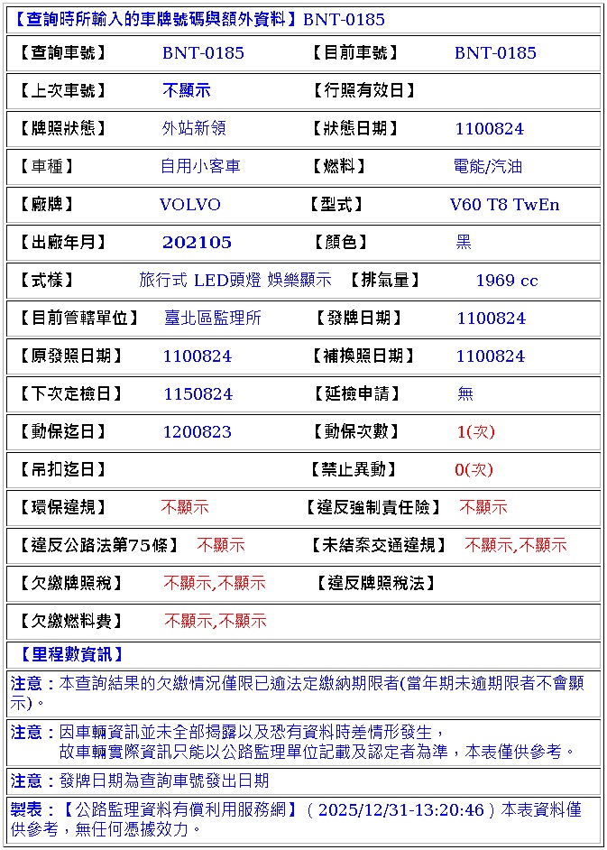 2021年05月出廠 2021年08月領牌 里程 101649 km