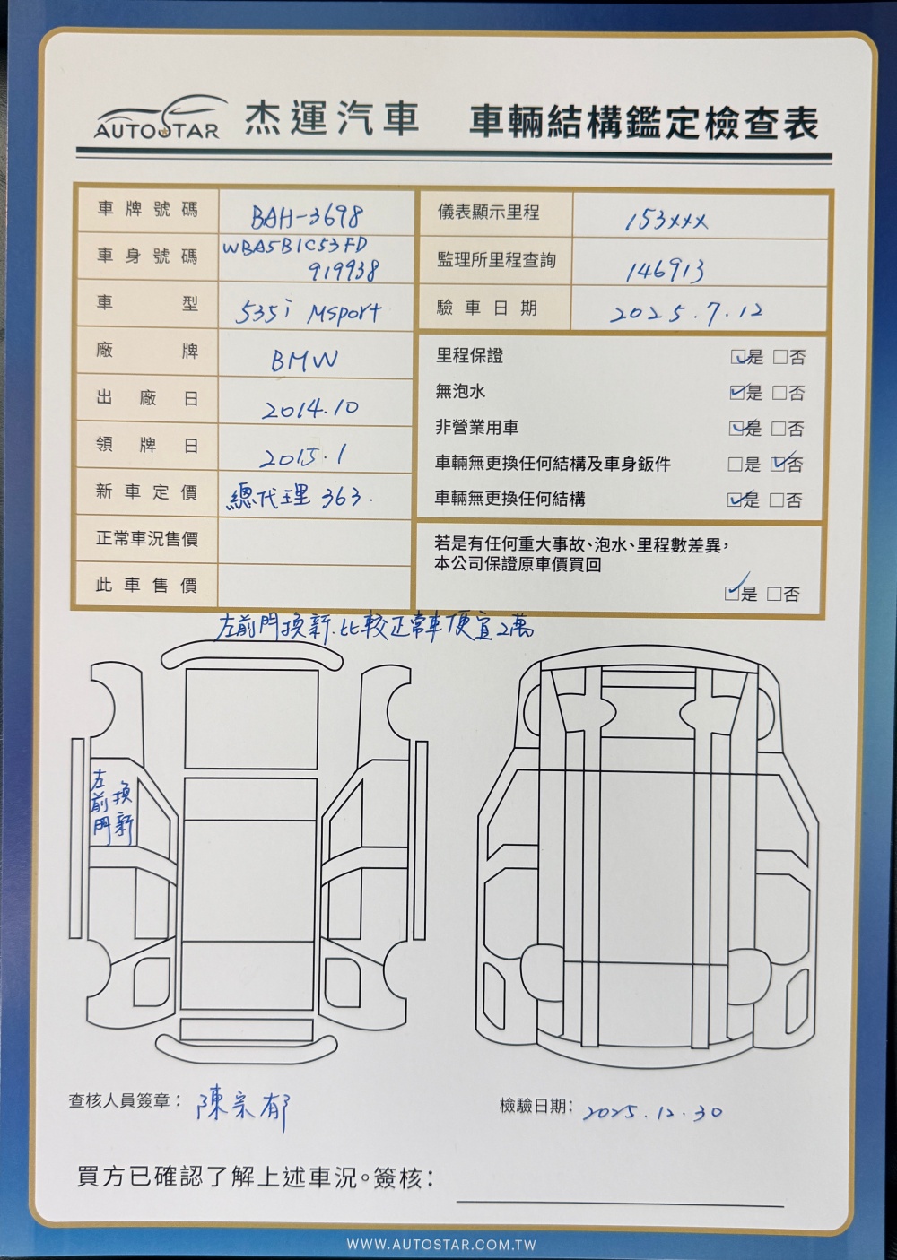 2019年2月14日領牌 實車里程:153617公里