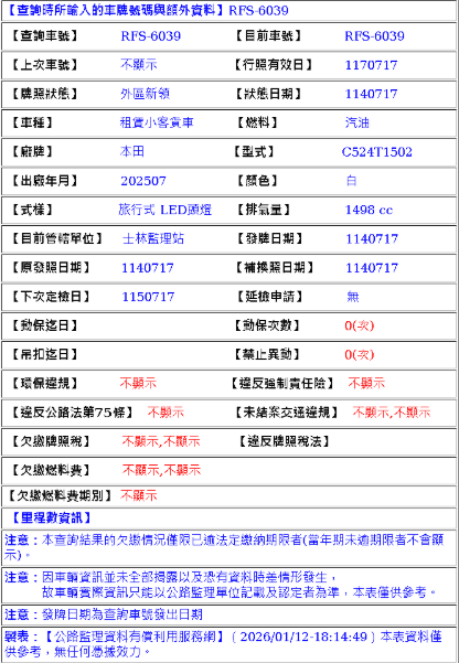 2025年07月17日 領牌 實車里程:6801公里