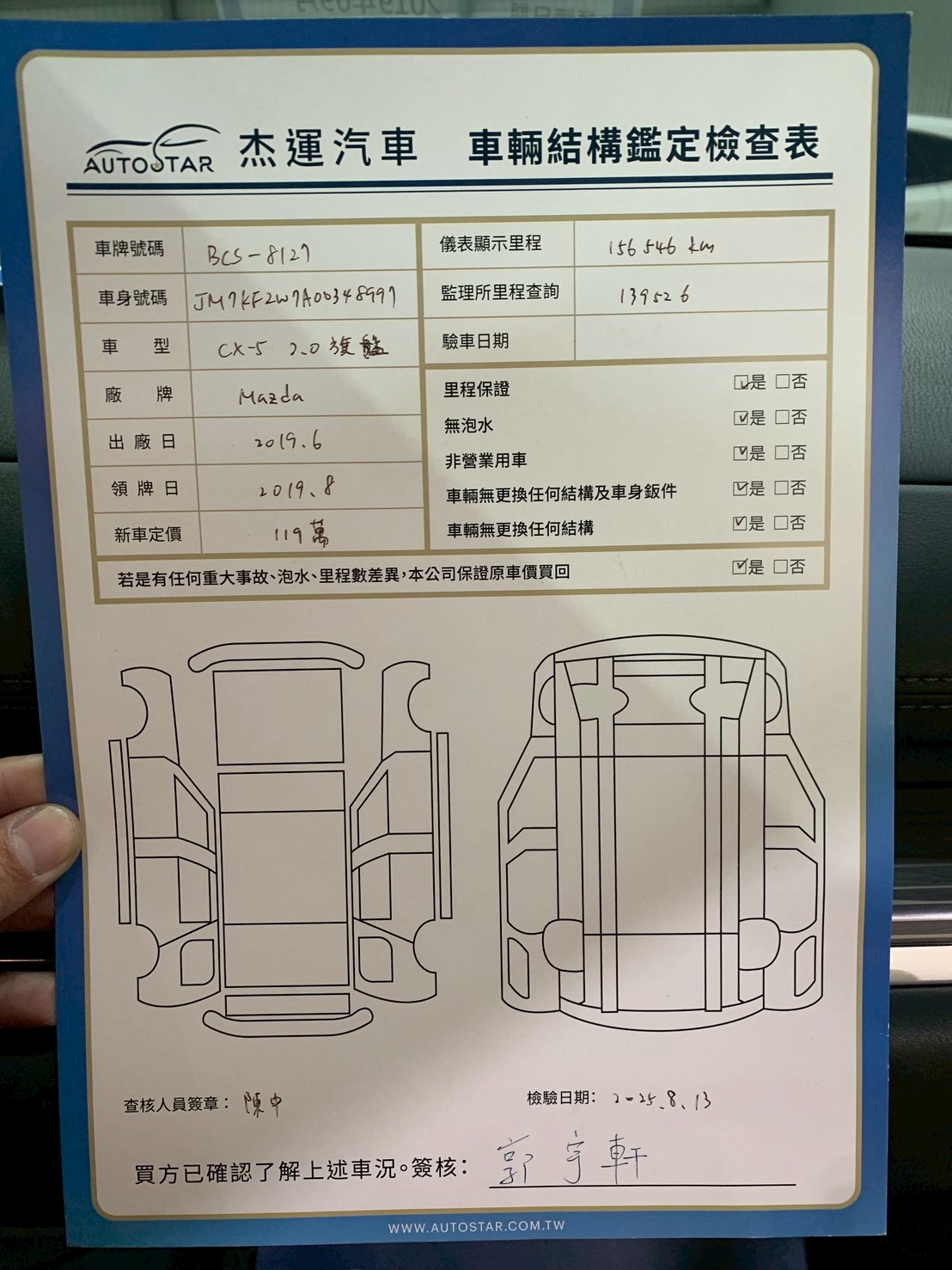 2019年9月17日領牌 實車里程:156579公里