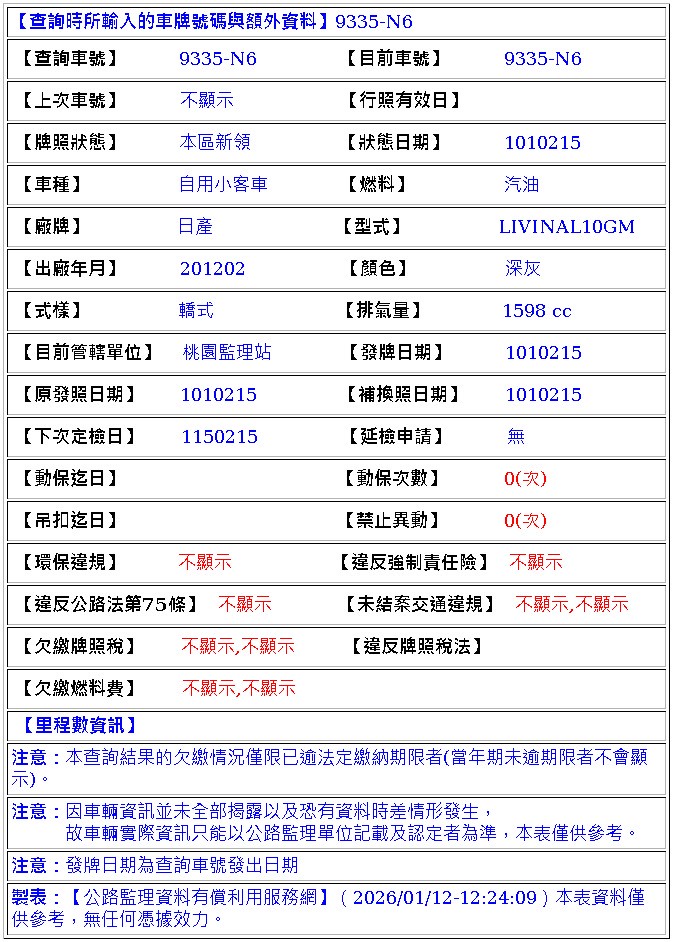 2012年02月出廠 2012年02月15日領牌 實車里程:88948 公里