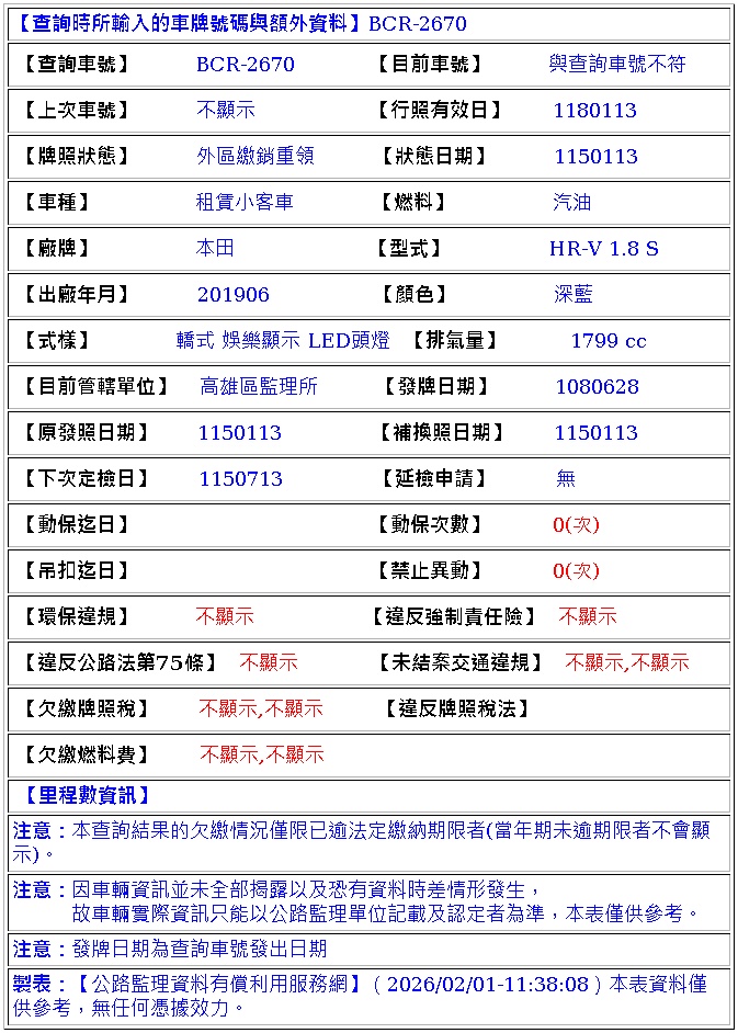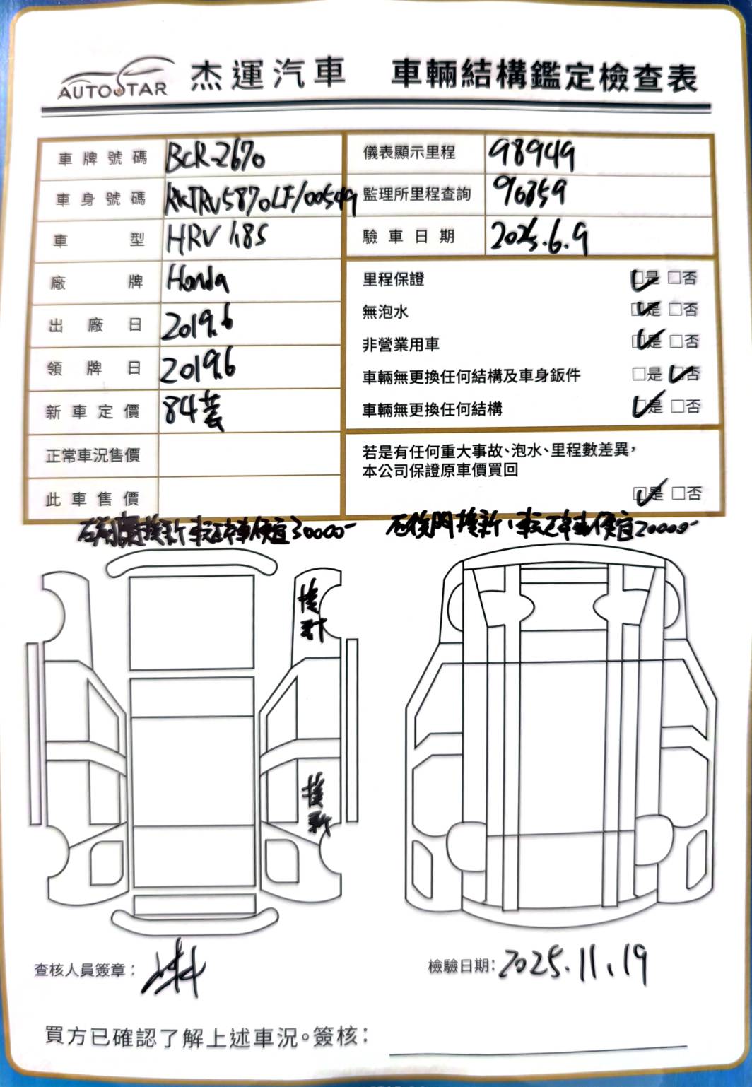 2019年6月出廠 2019年6月28日領牌 實車里程:99078公里