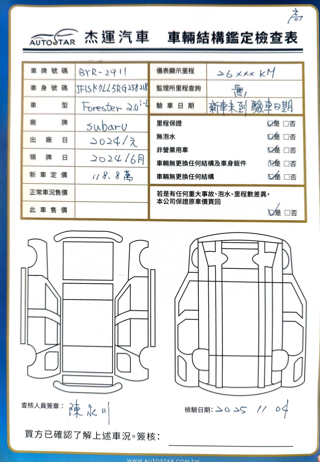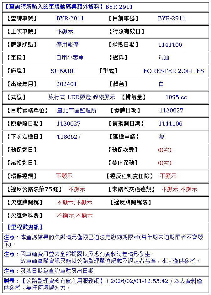 2024年1月出廠 2024年6月27日領牌 實車里程:26254 KM
