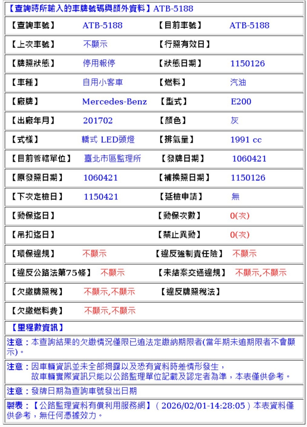 2017年4月21日領牌 實車里程:96160公里