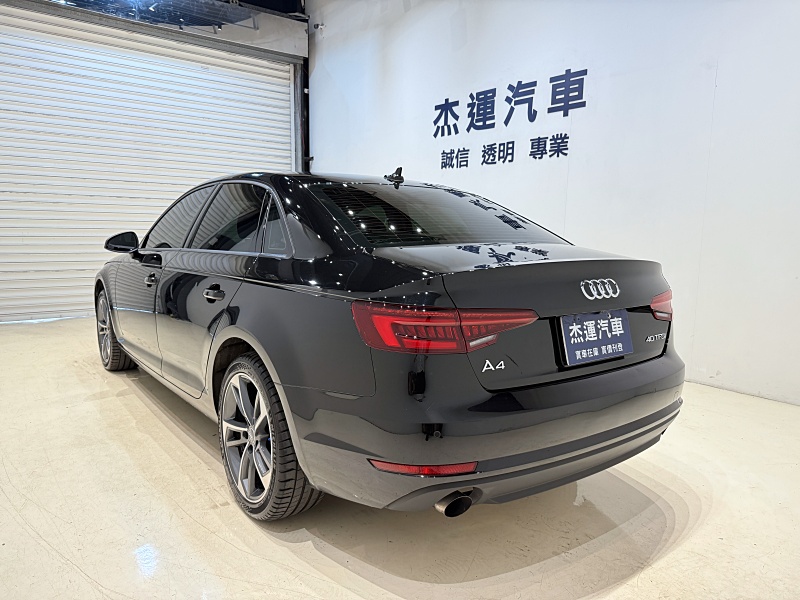 【杰運台北】2017 Audi A4 Sedan 40 TFSI LED頭燈 方向盤快控鍵 換檔撥片 分區恆溫空調 雙前座電動調整 後座出風口 衛星導航 10只揚聲器 免鑰匙啟動車門 定速巡航 倒車影像輔助 防盜系統