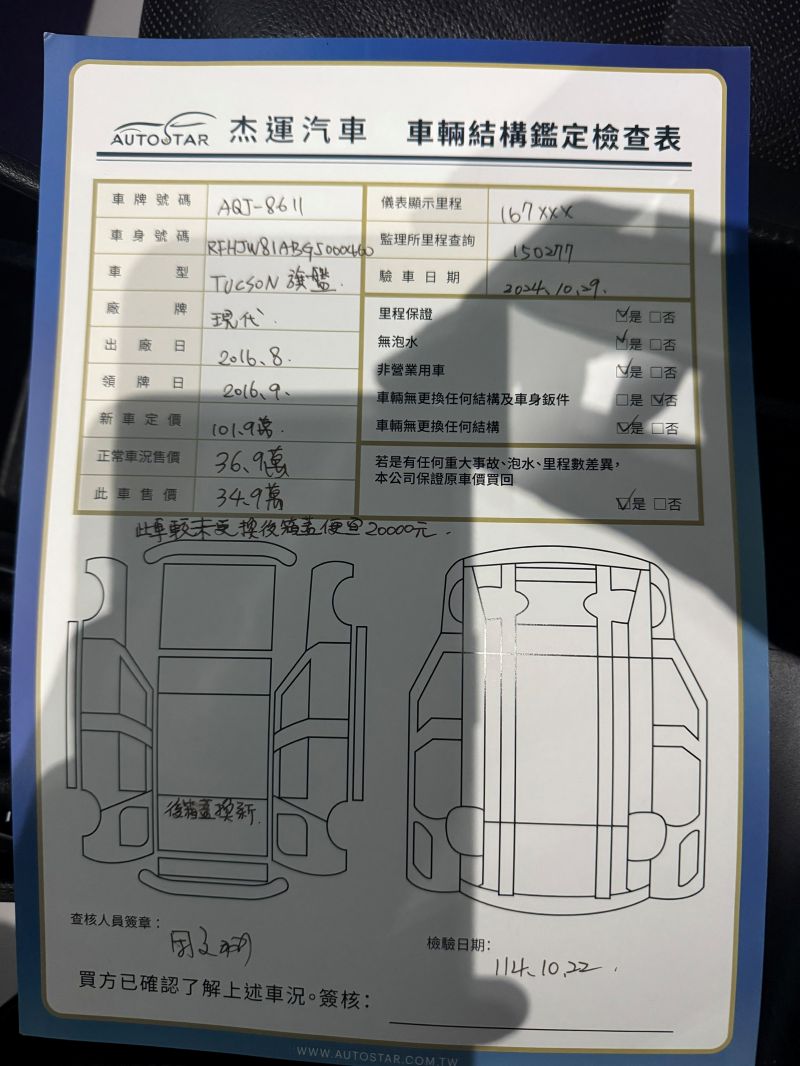 【杰運台北】2016 tucson 旗艦版4WD 盲點 電動座椅 全景天窗 LED頭燈