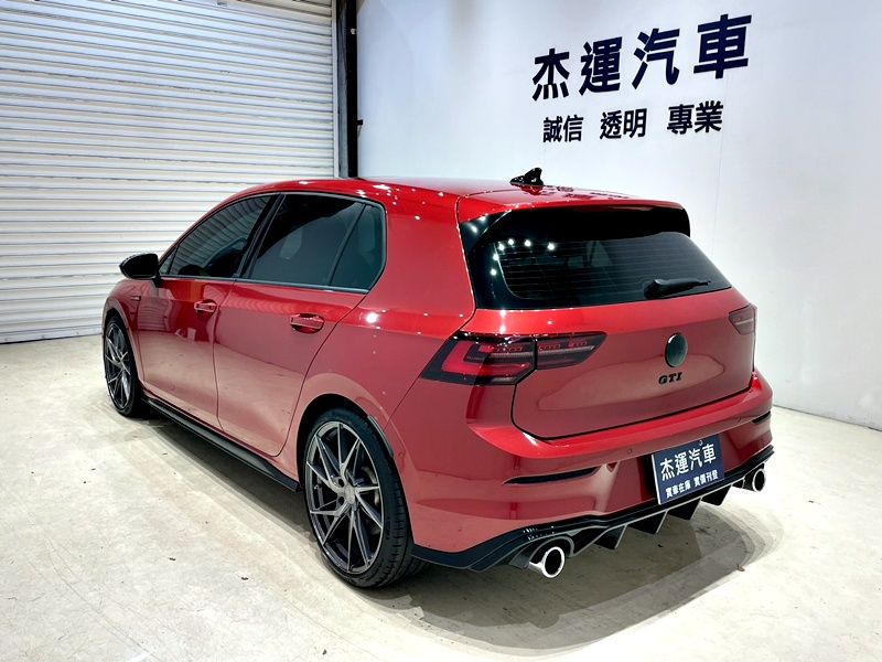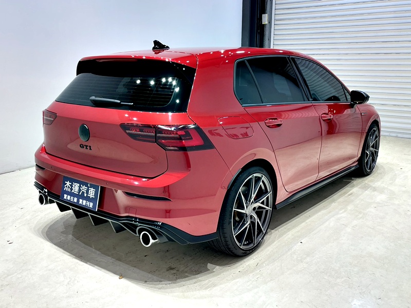 GTI配有19吋專屬鋁圈和GTI專屬高性能紅色煞車卡鉗、經典的紅色飾條和GTI徽飾彰顯經典鋼砲身分,擁有GTI專屬外觀空力套件以及GTI專屬"X"型LED前霧燈,在黑夜中也不容錯認,車尾同樣有GTI紅色置中車型銘牌、GTI專屬運動化後保桿和左右雙出排氣尾管,此外,為向經典的第一代GTI致敬,特別推出新車色君臨紅,延續GTI熱血操駕本色。