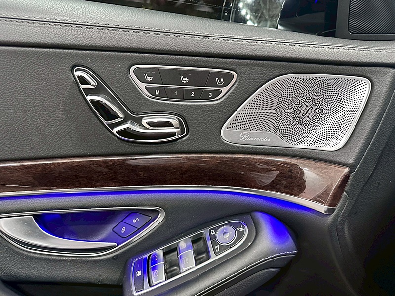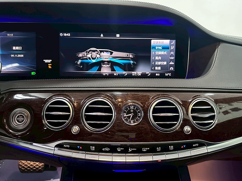 亮點: S-Class導入改款前Mercedes-Maybach S-Class採用的雙重鍍鉻水平柵欄式水箱護罩為全車系標配設計,標準搭載兩側MULITBEAM多光束智慧型LED頭燈,不僅導入ULTRA RANGE超長距遠光燈功能,更以三道式LED日行燈設計打造嶄新的車頭特色。多光束智慧型LED頭燈導入84顆獨立LED模組,呈現最佳解析度與照明分佈,而超長距遠光燈功能更可將照明距離增加至650m,締造全球市售車最遠紀錄。重新設計的前保桿造型同樣是可辨識的環節,以橫向鍍鉻飾條整合大型進氣口,營造豪華運動氛圍。