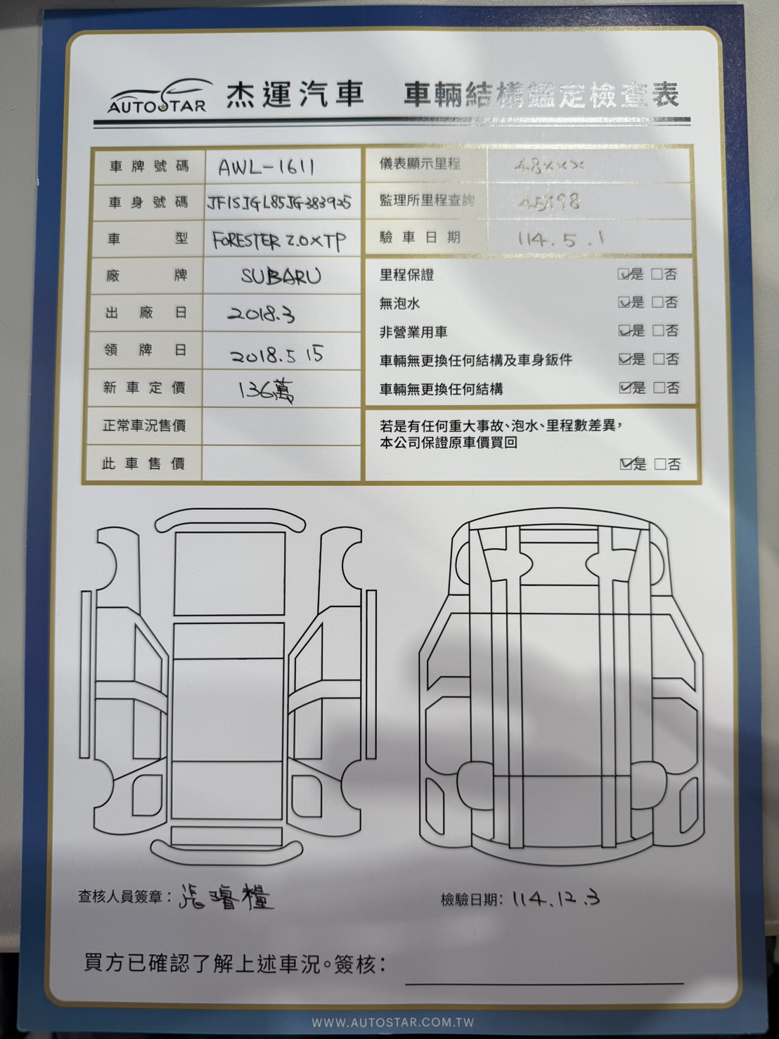 2018年5月15日領牌 實車里程:48492 公里