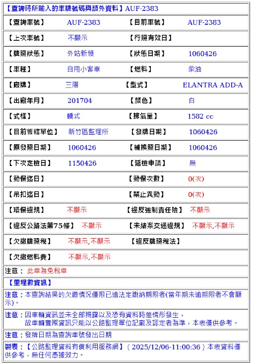 2017年04月出廠 2017年04月26日領牌 實車里程:64627公里