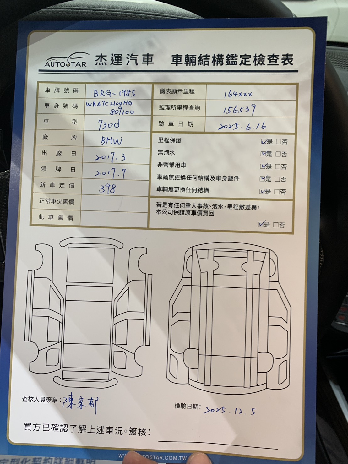 2017年03月出廠 2017年07月13日領牌 實車里程:164903 公里