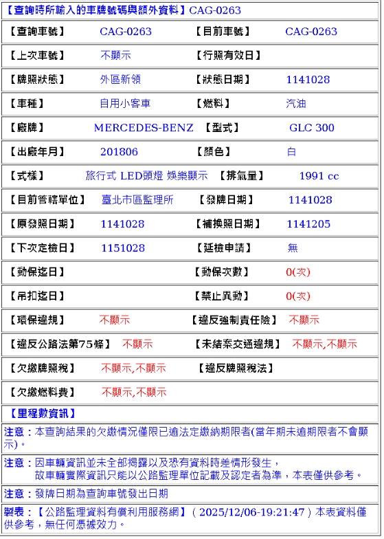 2018年06出廠 2025年10月28日領牌 實車里程:128830公里