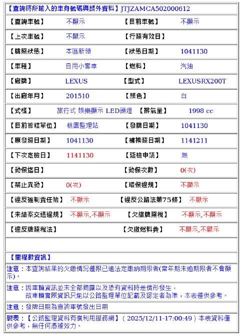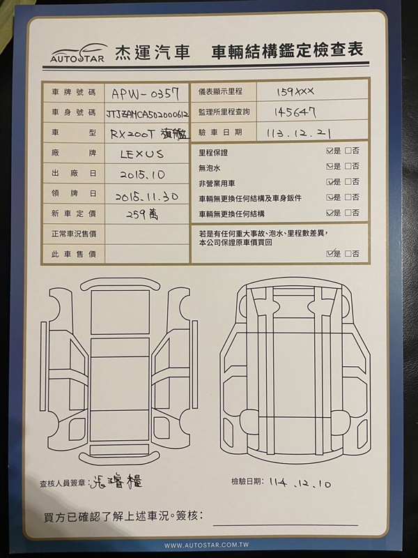 2015年10月出廠 2015年11月30日領牌 實車里程:159509 公里