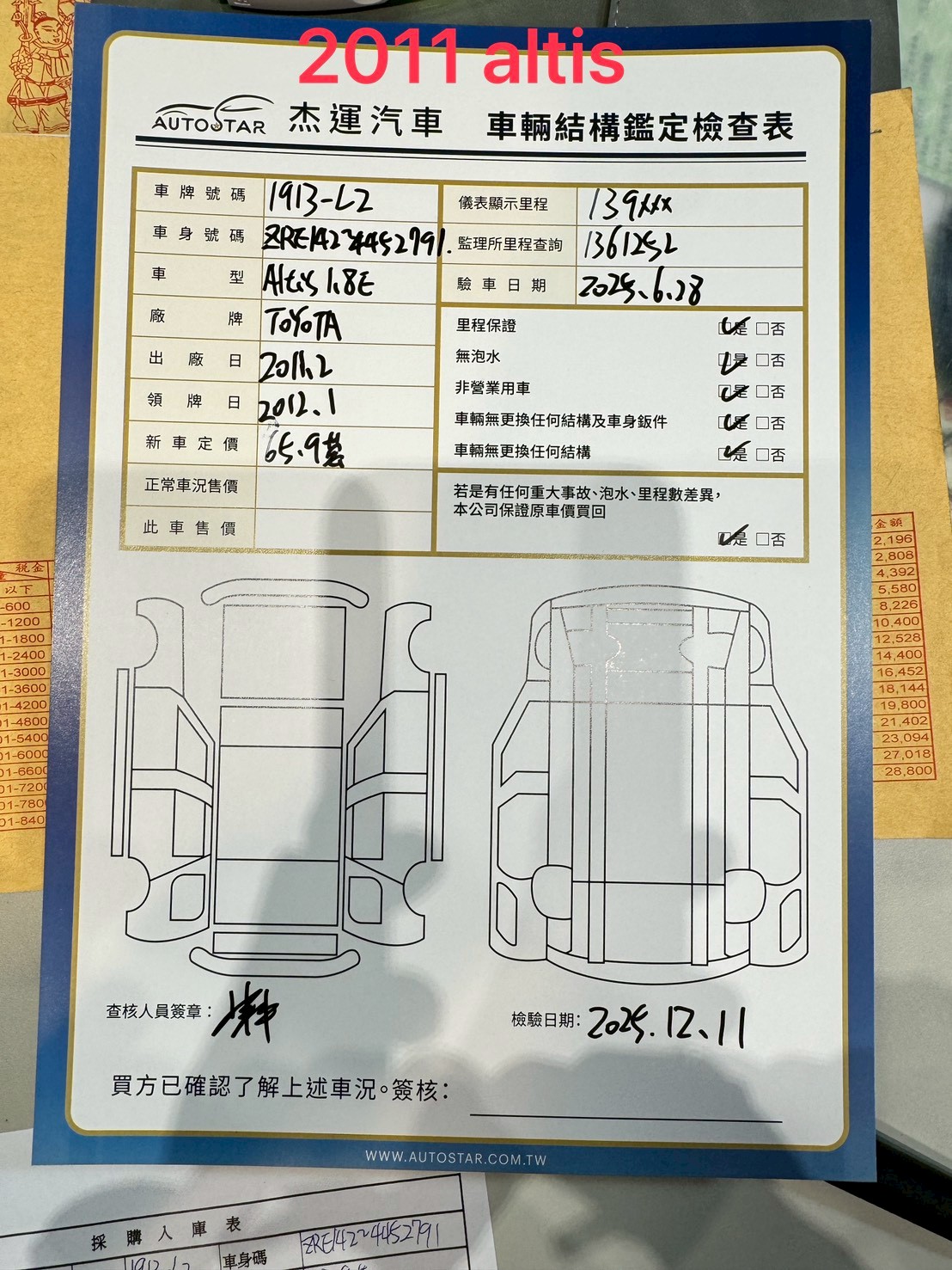2011年12月出廠2012年1月2日領牌 實車里程: 139923公里