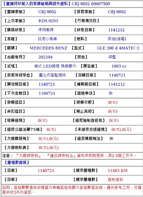 2022年04月出廠 2022年 07月22日領牌 實車里程:11669公里