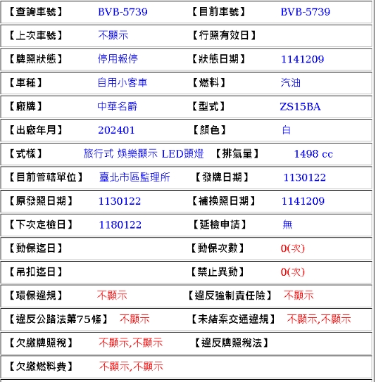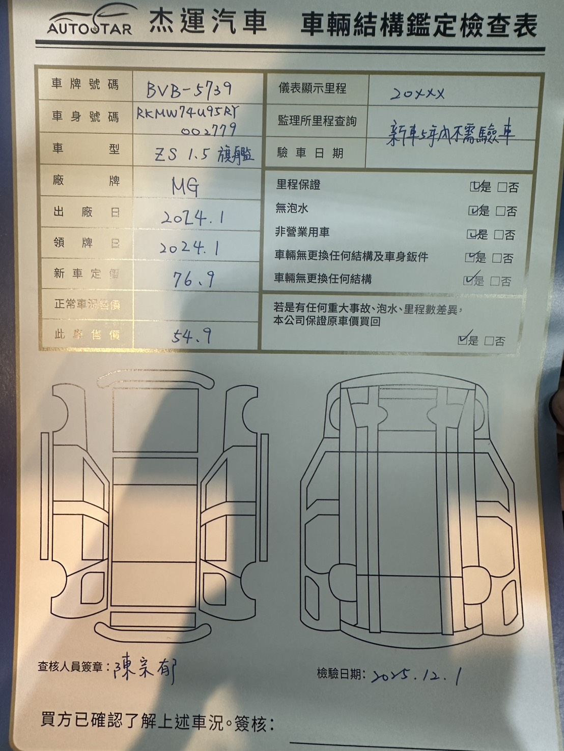 2024年01月出廠 2024年01月22日領牌 實車里程:20295公里