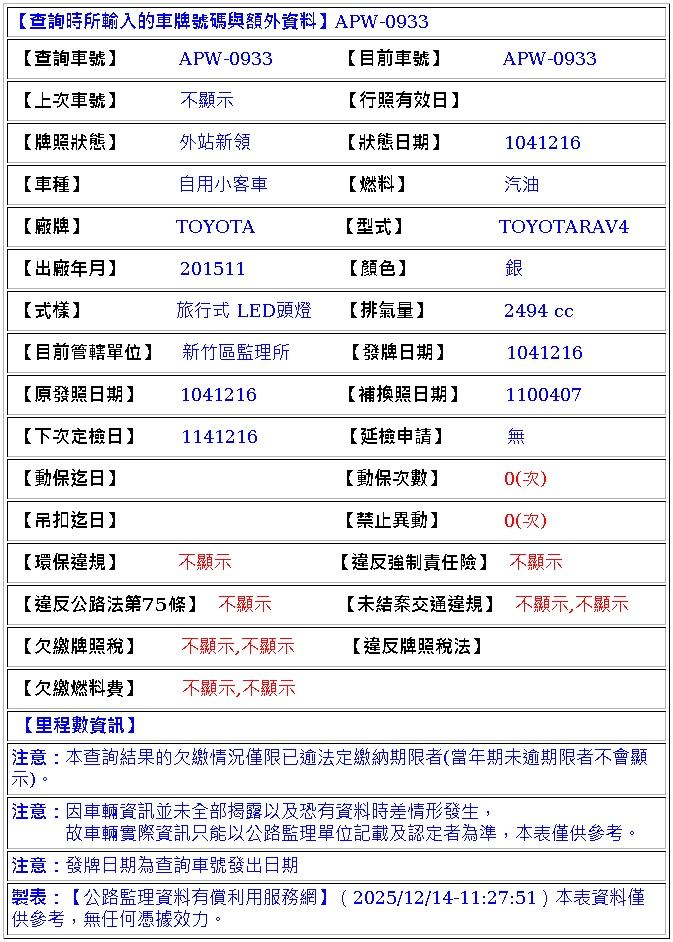 2015年11月出廠 2015年12月16日領牌 實車里程: 68300公里