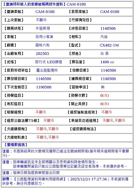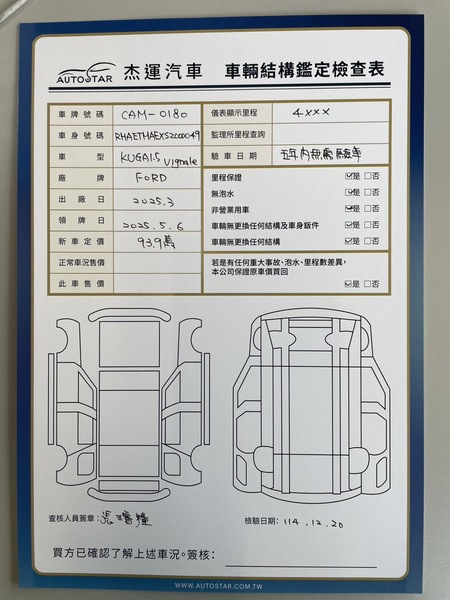2020年5月出廠 2025年05月06日領牌 實車里程:4111公里