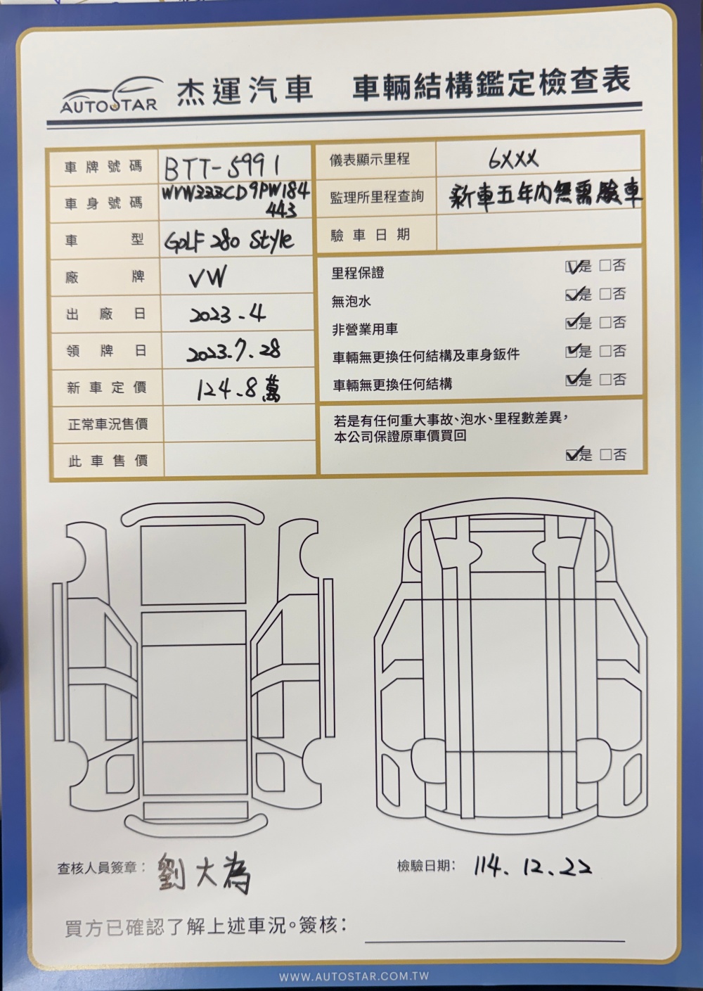 【杰運台北】2023 VW Golf 280 eTSI Style LED頭燈 換檔撥片 三區恆溫空調 駕駛座電動記憶座椅 駕駛座按摩座椅 後座出風口 IKEY 倒車顯影 自動停車系統 ACC AEB 盲點偵測 車道維持 無線充電 無線Carplay