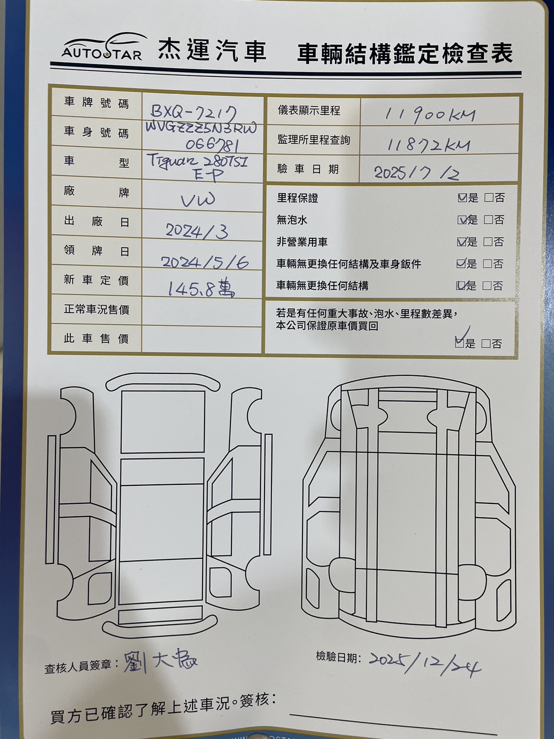 2025年07月02日領牌 實車里程:11878公里