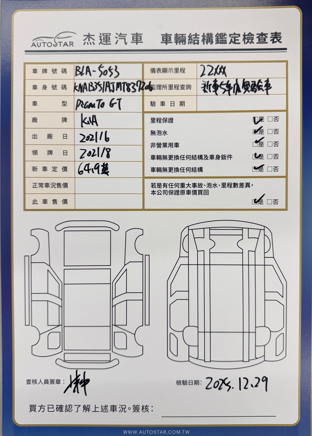 【杰運台北】2021 Kia Picanto 1.2 GT-Line LED 日行燈 空力套件 方向盤快控鍵 恆溫空調 IKEY 定速巡航 Carplay 倒車影像 斜坡起步輔助 車道偏離警示 車道維持輔助 AEB自動緊急煞車