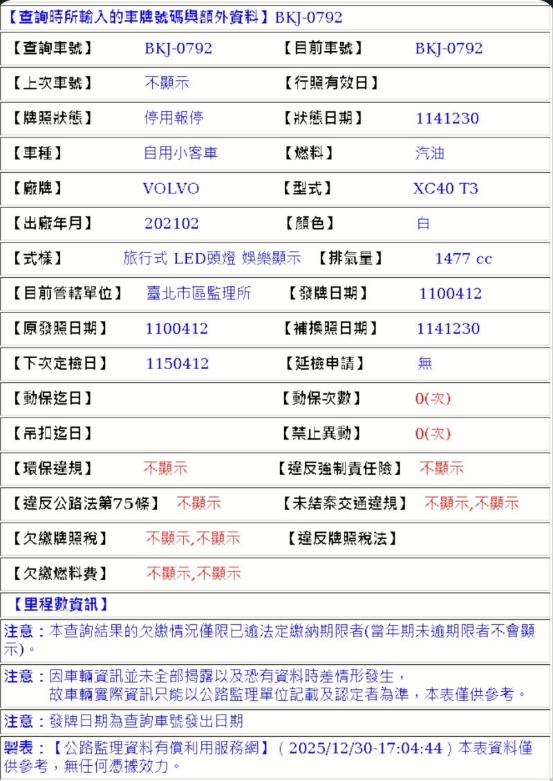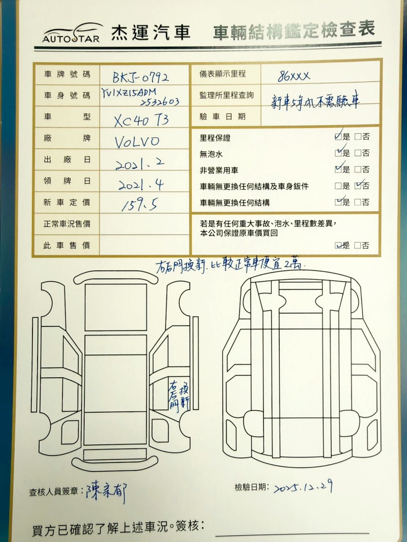 2021年02月出廠 2021年 04月12日領牌 實車里程:86069公里