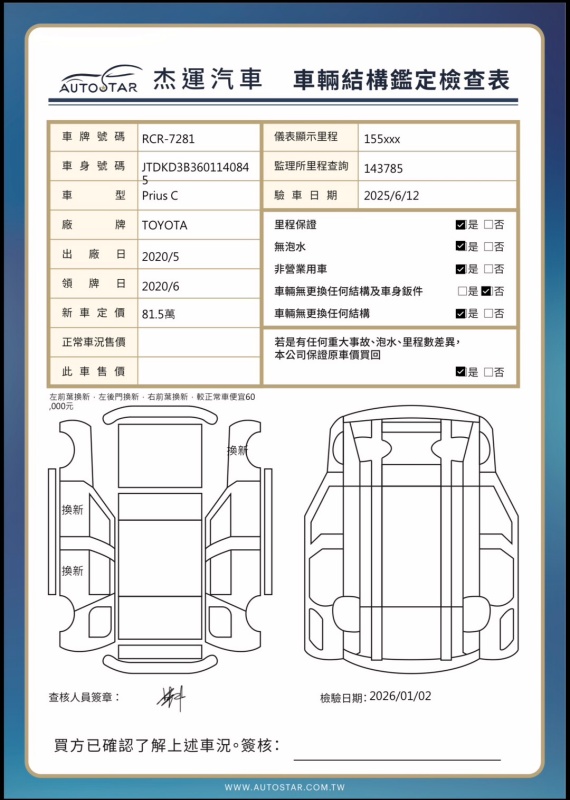 2020年5月出廠 2020年6月20日領牌 實車里程:155350公里